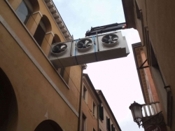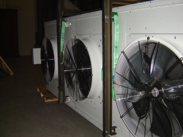 Il gruppo refrigeratore verrà raffreddato da due dry-cooler ad acqua installati su una terrazza al primo piano del fabbricato, dotati di batterie alettate di scambio termico acqua/aria e ventilatori con bassa velocità di rotazione e controllo elettronico del numero di giri a modulazione continua mediante Inverter.
