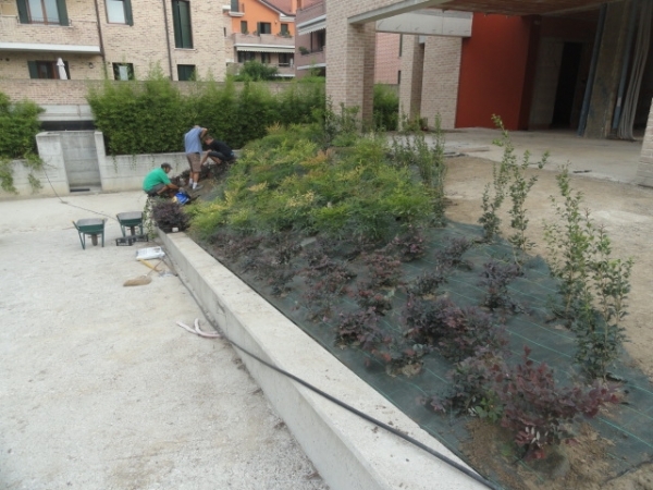nuove sistemazioni esterne per la formazione di percorsi pedonali e carrai e le recinzioni delle singole unità abitative opere di sistemazione del terreno circostante i fabbricati con piantumazione di piante.